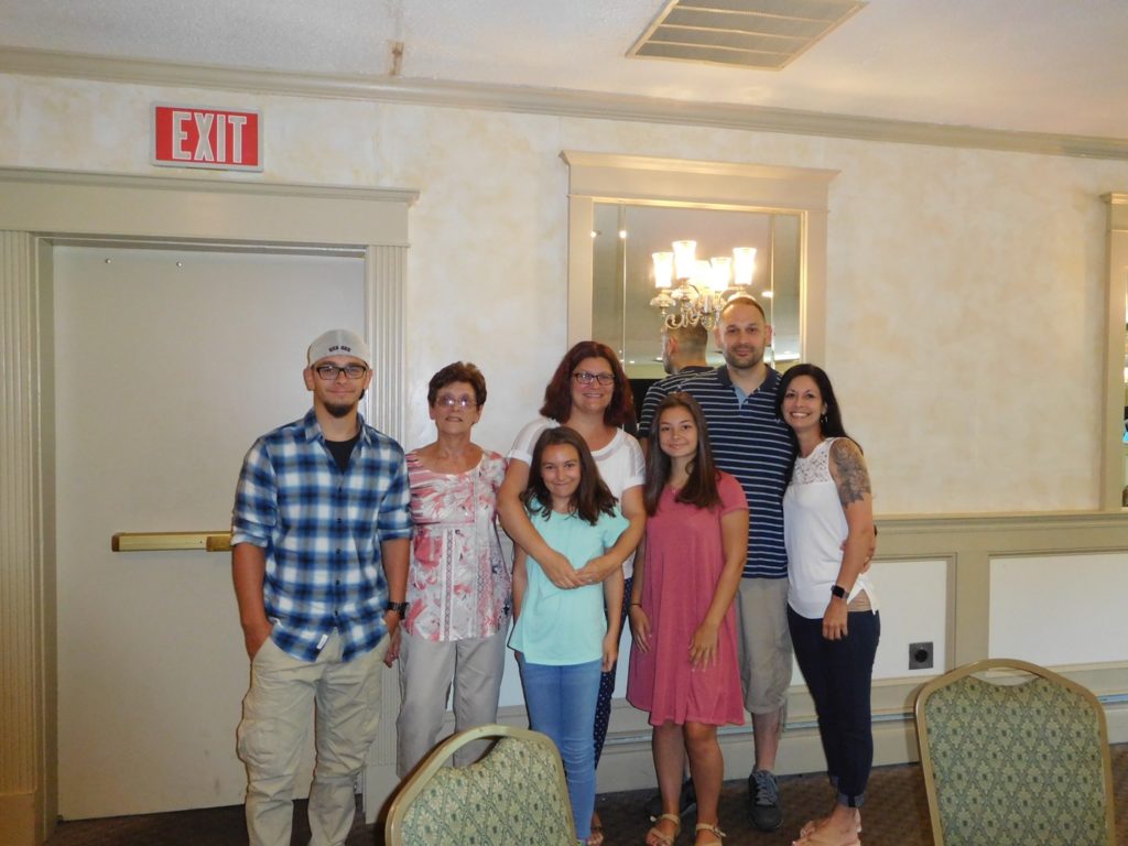 Here is a picture of Cousin Joanne’s family: Grandkid, daughter, Cousin Joanne’s husband, Cousin Joanne, Joanne’s other daughter with significant other & daughter & boyfriend.